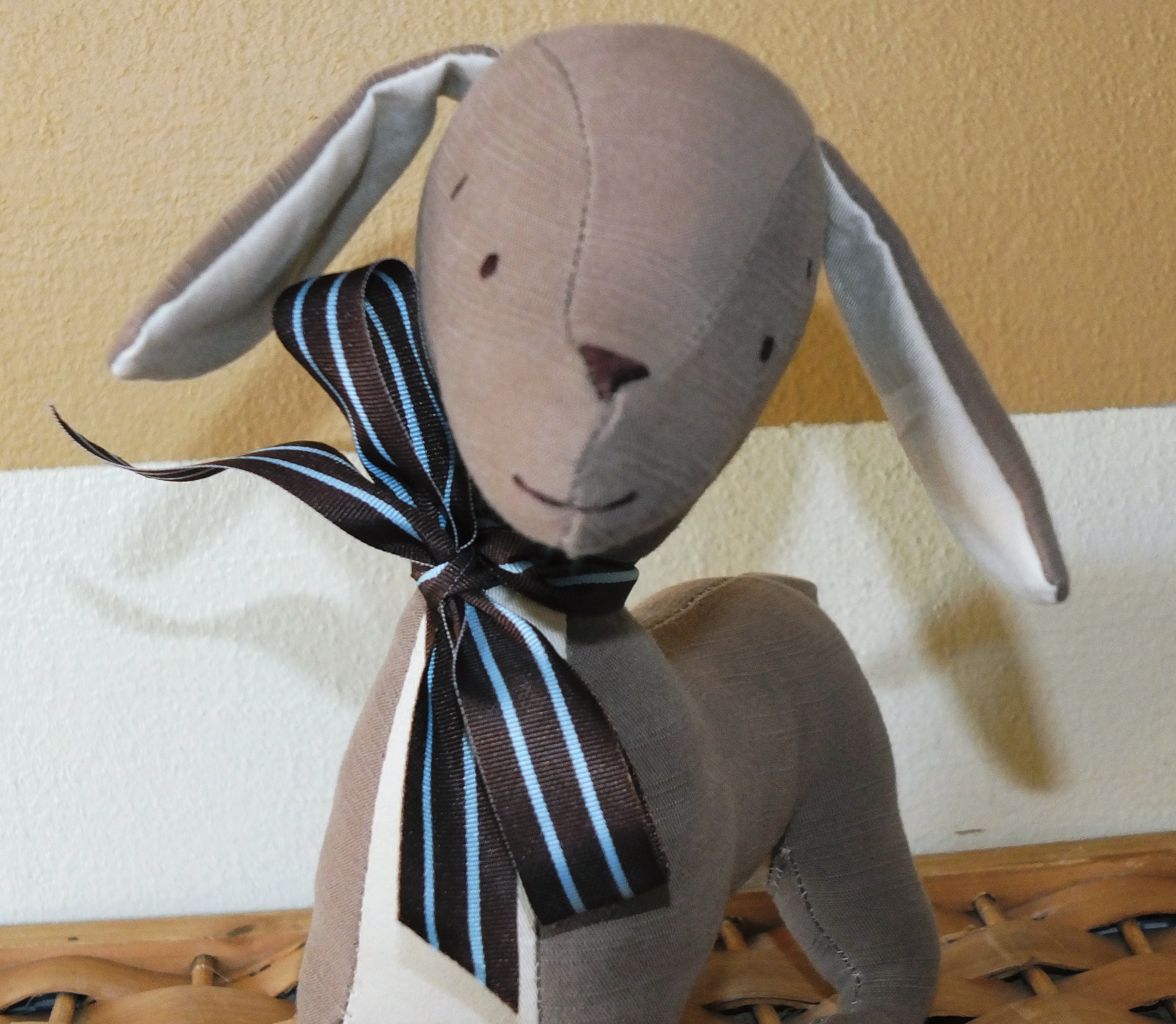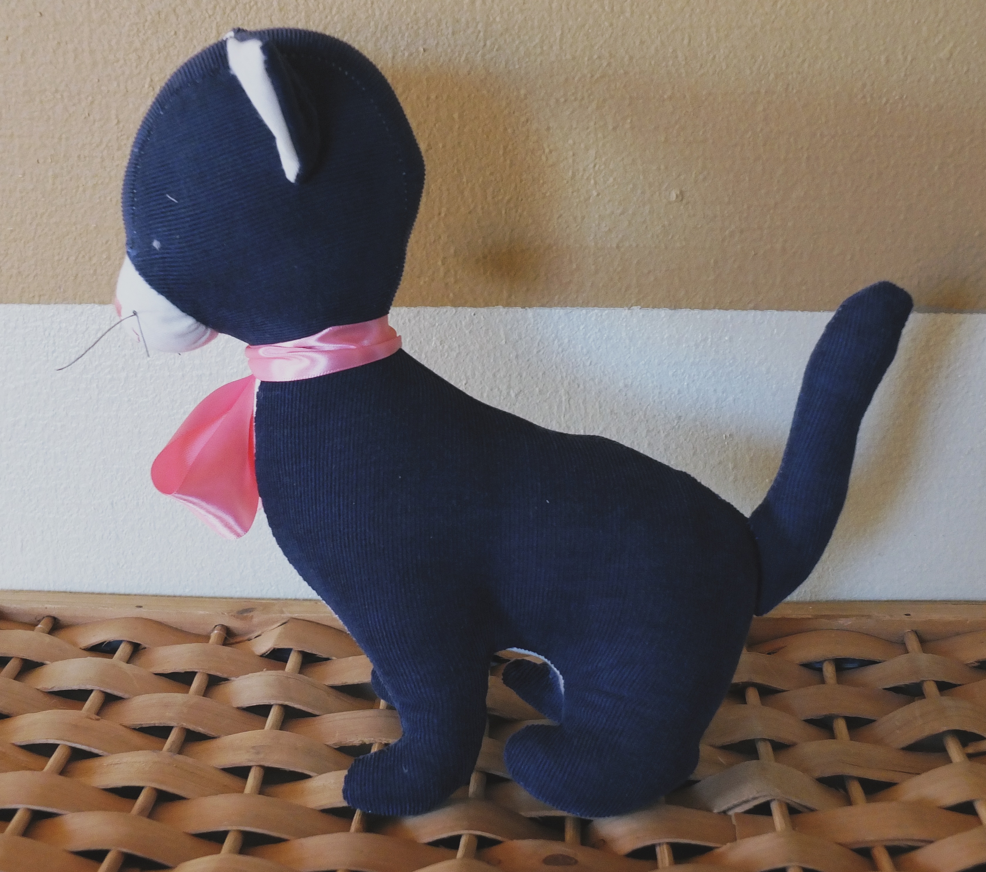 The first animal I attempted was a squirrel. Woodland creatures seem to be very popular right now, so why not join the trend? I found a nice rust colored, upcycled corduroy and got to work. I did alright following the pictures, despite the Japanese instructions, but I failed to take into account the stretchiness of the fabric. Once I started stuffing, I just couldn’t stop. The little squirrel rear end got fatter and fatter until it was as round as a ball. The boys thought it was hilarious, and so adopted the bottom half of my first attempt as a new ball game. They call it tumble butt.