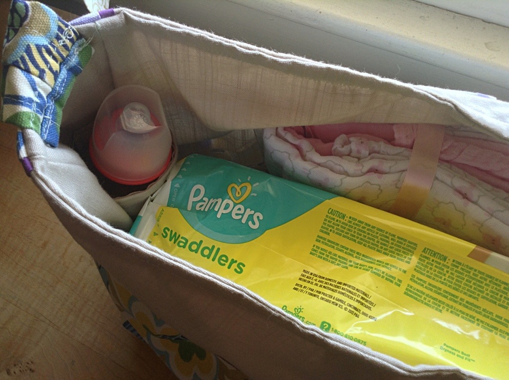 I had been looking around at new diaper bags, determined not to settle for the cheap plastic one they give you at the hospital, like I did for my boys. But I had a really hard time finding one I liked that was affordable. I figured it would be worth trying to make one, since I still had plenty of the sturdy fabric I used for the armoire leftover. I found several patterns I liked on pinterest, but in the end, pieced one together from a few different ideas. I wanted a nice big one, and this is what I came up with.