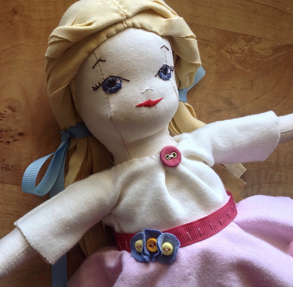 And just for fun, another doll, for a friend’s daughter. She asked for something pink and girly, maybe with flowers involved. I got some inspiration from the peonies my hubby bought me for my birthday last week. (These aren’t them, but they looked like this.)