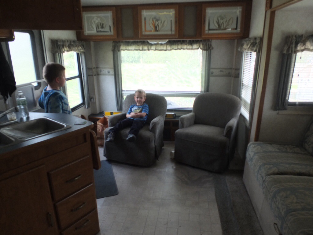 She and Britt climbed out of the bus to survey the damage, but they soon came back, looking relieved. The curb of the roundabout was so high that it had stopped us dead in our tracks, denting the bumper considerably, but nothing worse. And seeing as the bumper was already dented in many places, we weren’t too worried. Mom backed up the bus , we all buckled up this time, and we drove on, rubbing our necks but feeling thankful.