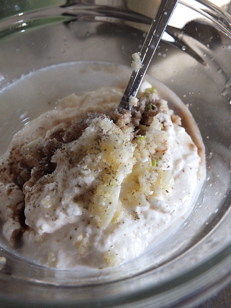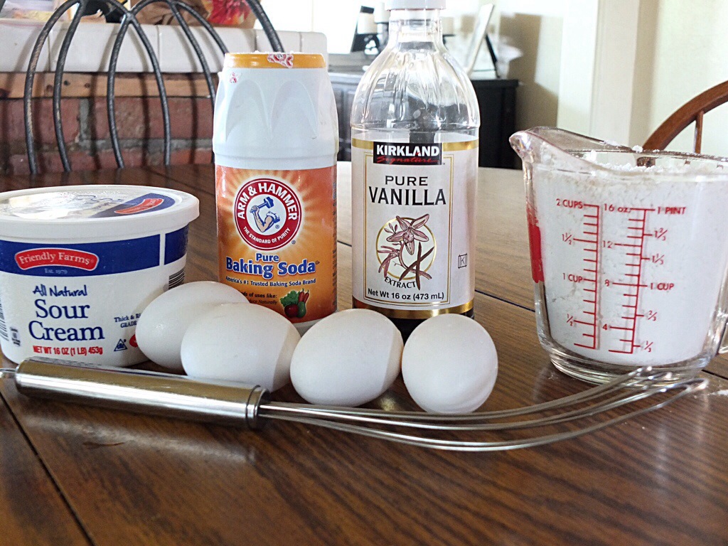 Then just dump in the whole 1 lb container of sour cream, along with a good splash of vanilla extract.