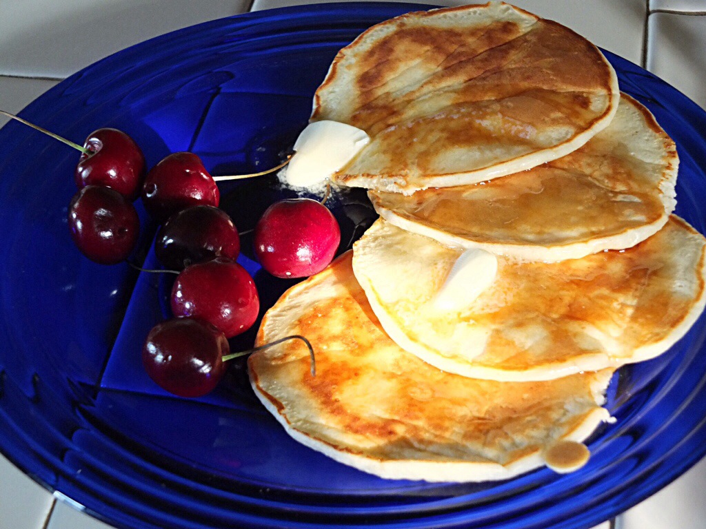 Sometimes, if dad were in the right mood, we would break tradition with Bisquick, and he would make ‘silver dollar’ pancakes. I don’t think the batter was anything special, but it was very thin, and he would make piles and piles of little tiny pancakes, and we girls would see who could eat the most.