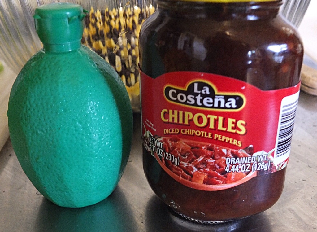 I’m kind of a wimp when it comes to heat, but I love the smoky flavor of chipotle peppers in adobe sauce. And it goes great with the sweet mango. So I just throw in one and let it sit for a while until the flavor has permeated the rest. Then I remove it. It’s a bit of an eye-watering shock to get a big bite of chipotle.