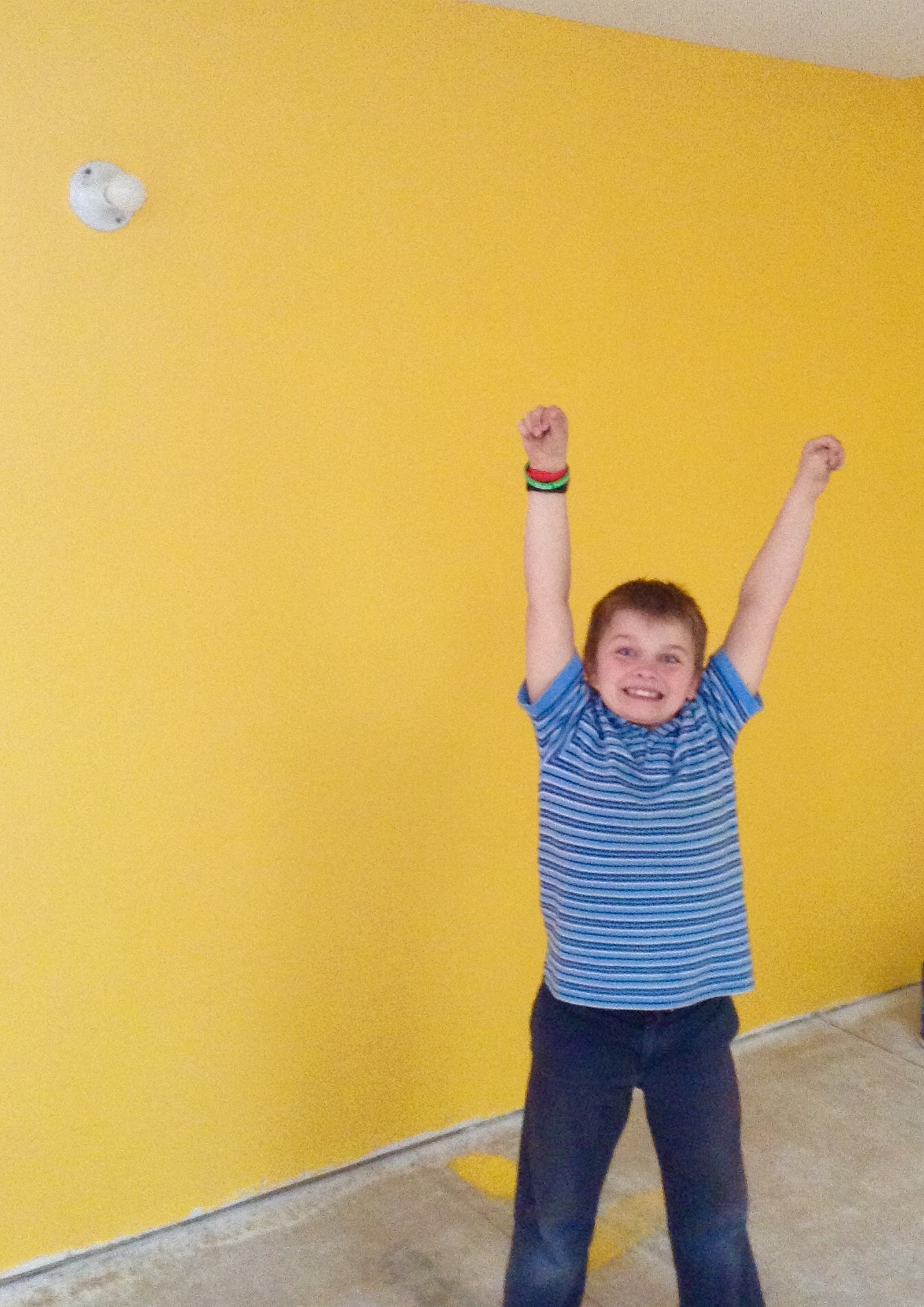 But once we were home and I had opened the yellow paint can, I saw my breath had been wasted on trying to tone it down. It looked three times brighter than in the store, and once on the walls, well, you’ll see.