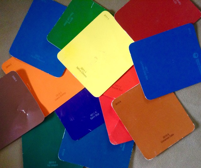 You know what wall I mean- the wall covered with little squares of every possible color shade imaginable- ten bajillion little colored squares, all shiny and bright like candy and every one ‘the perfect color’ for their bedroom.