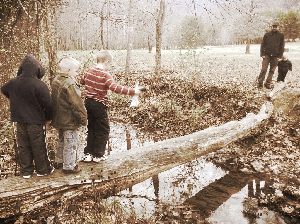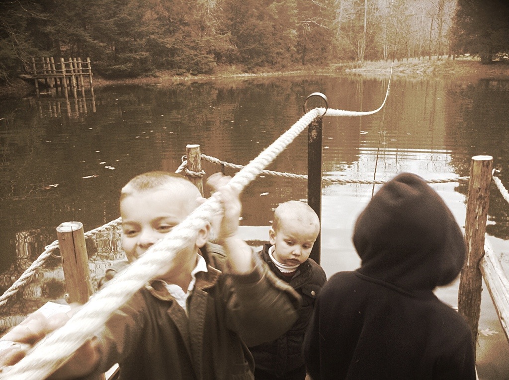 they made it a little too easy to access the water, as my two youngest found out to their very wet sorrow. I hadn’t thought to bring a change of clothing since I didn’t know we would be having such adventures, so daddy’s big coats had to suffice.