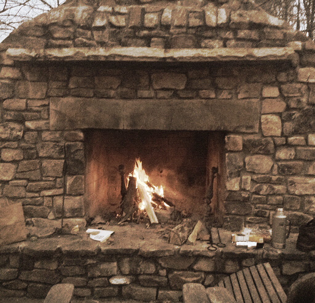 But there was balm even in this, since we had brought tea and cookies and managed to find the means to light a roaring fire in the big outdoor fireplace.